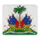 This design features the national coat of arms of Haiti (officially known as the Republic of Haiti), which is a country on the island of Hispaniola in the Greater Antilles archipelago of the Caribbean Sea. Haiti is located to the east of Cuba and Jamaica and south of The Bahamas and the Turks and Caicos Islands. Haiti occupies the western portion of Hispaniola, the island it shares with the Dominican Republic. Haiti is the most populous country in the Caribbean. The capital and largest city of Haiti is Port-au-Prince.