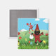 A vibrant and eye-catching magnet featuring a delightful scene of two Haji Firuz figures. The first Haji Firuz stands joyfully in the foreground, his bright red attire and cheerful smile radiating energy. His face is painted in the traditional black, and he is mid-dance, spreading happiness. Behind him, a second Haji Firuz appears as a silhouette, adding a sense of depth and playfulness to the design. The background features a lush green meadow, symbolizing the arrival of spring, with vibrant grass and scattered wildflowers. The sun shines warmly above, casting a soft, golden light on the entire scene, emphasizing the theme of renewal and celebration of Nowruz. This magnet captures the lively spirit of the season, bringing joy and color to any space.