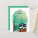 The Holy Kaaba in Mecca, Saudi Arabia, hand-drawn with a green background and the phrase Hajj Mabroor written in a distinctive handwriting.
