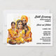 A beautiful watercolor graphic featuring an Indian bride and groom wearing yellow orange traditional bridal wear. They are smiling broadly and are standing behind two woman sitting cross legged in front of brown round bowls filled with turmeric powder. Celebrate this special pre wedding celebration with friends and family and ensure that the bride and groom are protected and cleansed prior to their special day. Custom black templates appear against the white background that may be personalized to suit your requirements. This elegant, trendy and cool invitation is ideal for any Haldi, Sangeet; Hindi; Hena; Mehndi or Mhindi ceremony.