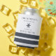 Nautical can cooler features a coastal style starfish and stripes design. Personalize the custom text with a family last name and beach house (or other title) with the year established and location. Hale navy blue and white colour scheme.