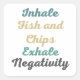 Faites-vous plaisir et diffusez de la positivité avec ces autocollants "Inhale Fish and Chips Exhale Negativité" ! Dotés d'une typographie audacieuse et inspirante, ces autocollants sont parfaits pour ajouter un peu de personnalité à votre carnet, ordinateur portable, bouteille d'eau, ou tout autre chose entre les deux. Chaque autocollant est fait de vinyle durable et a une finition lisse et non brillante qui résiste à l'eau, à la lumière du soleil et aux rayures, pour que vous puissiez en profiter pendant des années à venir. Que vous soyez un amateur de poissons et de puces ou que vous souhaitiez vous rappeler à vous-même et à d'autres de lâcher de la négativité, ces autocollants sont un ajout amusant et enrichissant à toute collection.