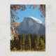 A beautiful photograph of Half Dome in autumn, framed with colourful autumn leaves. Copyright © 2006 Karin Hildebrand Lau.