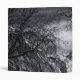 This photo featires a classic view of Half Dome in Yosemite Valley in winter, framed by trees.