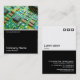 A business card template design with a white edged black lower half. The front design includes a photo or artwork in the top half. The same theme is repeated on the back without the image, allowing room for other details and further customization. The three squares motif used as a decorative feature on the back is from one of Zazzle's useful picture fonts and can be used as a decorative feature or replaced with your own logo or decoration.