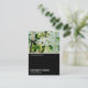 A business card template design with a white edged black lower half. The front design includes a photo or artwork in the top half. The same theme is repeated on the back without the image, allowing room for other details and further customization. The three squares motif used as a decorative feature on the back is from one of Zazzle's useful picture fonts and can be used as a decorative feature or replaced with your own logo or decoration.