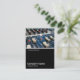 A business card template design with a white edged black lower half. The front design includes a photo or artwork in the top half. The same theme is repeated on the back without the image, allowing room for other details and further customization. The three squares motif used as a decorative feature on the back is from one of Zazzle's useful picture fonts and can be used as a decorative feature or replaced with your own logo or decoration.