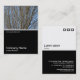 A business card template design with a white edged black lower half. The front design includes a photo or artwork in the top half. The same theme is repeated on the back without the image, allowing room for other details and further customization. The three squares motif used as a decorative feature on the back is from one of Zazzle's useful picture fonts and can be used as a decorative feature or replaced with your own logo or decoration.