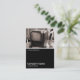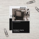 A business card template design with a white edged black lower half. The front design includes a photo or artwork in the top half. The same theme is repeated on the back without the image, allowing room for other details and further customization. The three squares motif used as a decorative feature on the back is from one of Zazzle's useful picture fonts and can be used as a decorative feature or replaced with your own logo or decoration.