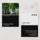 A business card template design with a white edged black lower half. The front design includes a photo or artwork in the top half. The same theme is repeated on the back without the image, allowing room for other details and further customization. The three squares motif used as a decorative feature on the back is from one of Zazzle's useful picture fonts and can be used as a decorative feature or replaced with your own logo or decoration.