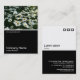 A business card template design with a white edged black lower half. The front design includes a photo or artwork in the top half. The same theme is repeated on the back without the image, allowing room for other details and further customization. The three squares motif used as a decorative feature on the back is from one of Zazzle's useful picture fonts and can be used as a decorative feature or replaced with your own logo or decoration.