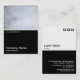 A business card template design with a white edged black lower half. The front design includes a photo or artwork in the top half. The same theme is repeated on the back without the image, allowing room for other details and further customization. The three squares motif used as a decorative feature on the back is from one of Zazzle's useful picture fonts and can be used as a decorative feature or replaced with your own logo or decoration.