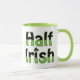 Half Irish text that is half green with a shamrock dotting the letter i in the word Irish is a funny gift design for St. Patrick's Day and Celtic festivals.