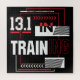 13.1 in Training - 13.1 miles half-marathon running gear. Modern art for men or women half marathon runner. Bold lines and chevron arrows make an abstract inspirational image. >> Red, white and black cutout lettering, typography word art for training to run a half marathon race. >> Customizable artwork. Add YOUR OWN personal name or message. Click "Personalize this template" or create your own additional text, background shape, graphic, etc. to customize the final design.