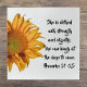 This half sunflower puzzle shows a sunflower photo with the words of Proverbs 31:25 next to the flower. The words are easy to personalize and add your favourite Bible verse or motivational saying. Proverbs 31:25 says that the ideal Christian woman is comfortable in her life now, dignified with no worries, and prepared for whatever the future brings. It's a great Christian birthday gift or gift for a woman you admire. "She is clothed with strength and dignity; she can laugh at the days to come. Proverbs 31 :25"