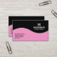 A business card with a bold wave design. Company name and business type or slogan in the header along with a monogram which can of course be changed or alternatively replaced with your logo or even a decorative symbol. Address details on the front. Name and other details on the back. Suitable for many types of business.