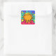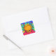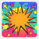 A abstract comic book style starburst background with halftone dots and colorful geometric shapes.