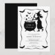 Celebrate the magic of new beginnings with our enchanting Halloween Baby Shower Invitation, featuring a hand-drawn illustration of a pregnant witch stirring her cauldron amidst playful bats. This whimsical design perfectly captures the spirit of October, making it an ideal choice for a unique baby shower. Invite your guests to join in the fun and festivities with this charming invitation that sets the tone for a spellbinding celebration.