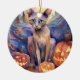 Halloween Abyssinian Cat With Pumpkins Scary Ceramic Ornament