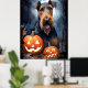 Get your furry friend ready for a howling good time with this adorable dog-inspired Halloween design! Featuring a spooky dog with pumpkins, this design is perfect for pet parents who want to include their four-legged family