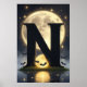 Halloween ABC alphabet poster for kids featuring the letter N, designed for playful seasonal spaces while supporting early learning and letter recognition.
