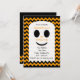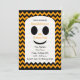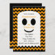 Cette invitation à la fête d'anniversaire d'Halloween présente un mignon fantôme blanc sur un arrière - plan de chevrons noir et orange. Ce design amusant d'Halloween vous permet de mettre tous les détails de votre invitation d'Halloween à l'intérieur du fantôme. Pour une touche spéciale, des bandes de chevrons apparaissent également au dos de l'invitation. Ce design d'invitation est une façon très mignonne pour les invités invitations à une fête d'anniversaire d'Halloween ! Copyright henishouseo