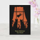 Halloween card of two cats looking out the window as a witch and her cat fly by. Change the name on the front to make it custom and personal! Cute and a fun message on the inside.