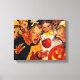 Décorez l'Halloween avec cette impression de toile très drôle et mignonne avec une peinture rétro de pomme d'enfants qui frotte à une fête costumée d'Halloween. Mais attention ! Le frottement de pommes peut être plus dangereux qu'il n'y paraît. Ce petit garçon en costume de clown avec un crâne et des os croisés sur son casquette qui vient de perdre sa dent de devant dans une pomme connaît maintenant la véritable horreur des fêtes d'Halloween. Tous les autres enfants, et même la lugubre jack-o-lanterne, semblent amusés par l'animation. Artiste : Charles Dye