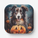 Halloween Australian Shepherd With Pumpkins Scary Paper Plate