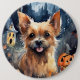 Halloween Australian Terrier With Pumpkins Scary 6 Inch Round Button