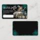 Baby shower book diaper raffle card featuring an adorable teddy bear in a cauldron, wearing a witch hat, surrounded by pumpkins, candles, and mystical green smoke design.