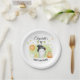 Halloween Baby Shower Paper Plates A Little Boo is almost due. Cute watercolor baby ghost and pumpkins, hearts and stars, orange, light green.