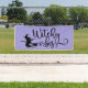 This banner is shown with a festive Halloween witchy vibes witch print.
