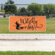 This banner is shown with a festive Halloween witchy vibes witch print.
