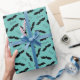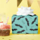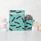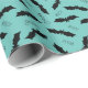 Halloween bat pattern wrapping paper with 'Boo' and 'Spooky' text on teal/turquoise background. Background colour can be changed in the design tool. Matching items available. Artwork from artists own illustrations. Please contact me for customization and special requests. © Zoe Chapman Design
