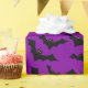 Black bats flying on a purple Halloween night sky is a spooky creepy gift wrap idea this holiday season.