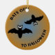 Cute little bats wishing a happy 'bats off to Halloween' in this festive digital illustration.