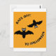 Cute little bats wishing a happy 'bats off to Halloween' in this festive digital illustration.