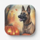 Halloween Belgian Malinoi With Pumpkins Scary Paper Plate