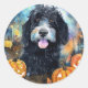 Halloween Bernedoodle With Pumpkins Scary Classic Round Sticker