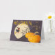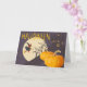 Cute picture of a Halloween scene, with a house, trees, pumpkins and a witch flying on a broom and the word "Halloween" is featured on this greeting card. Inside of card reads, "is here! Best Witches for a fun one"! A great way to send Halloween greetings to family and friends.