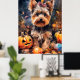 Halloween Biewer Terrier With Pumpkins Scary Poster