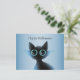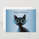 Halloween Big Eyes Black Blue Evil Cat Postcard
