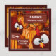 A graphic illustration of pumpkins with cute roosters on a kid's birthday party invitation. The invitation has text templates for your personalization. Original artwork: Copyright Charmaine Paulson