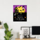 This fun and spooky welcome sign features a cute witch beside a crooked haunted house. In the background is a full moon with bats and a purple night sky with stars. The text combines decorative and serif fonts for a stylish and modern look. This is perfect for a Halloween themed birthday party.