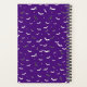 Creepy black and white bats flying in a random pattern cover this cute notebook's purple surface, with tiny white stars filling the spaces here and there, setting your spooky Halloween mood. Available in an array of background colours. And customizable, of course!