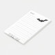 These Halloween sticky notes were designed with a simple graphic black bat flying in the upper right corner. The word, "Note:" is in the upper left. There are faded lines in the white background. Your name will be printed on the bottom.