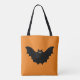 Black Bat artwork design image by TheFabricSeal at Zazzle is a cute and simple lone black bat with background colours of Halloween Orange and Halloween Purple illustration drawing silhouette style with peekaboo peering khaki green and pumpkin orange eyes looking out for friends and prey alike and a cool dark Halloween night of adventure, goblins, ghouls and ghosts.