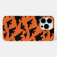 Cool, fun and unique Halloween gift idea for anyone. Halloween black flying bats spooky silhouette holiday pattern. Hallows Eve flock of black bats. You can customize orange colour.