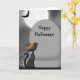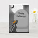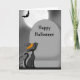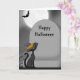 Halloween black cat with tomb stone..greeting card .. featuring a black cat in a witches hat in a spiders web, bat and moon and a scary background.. comes complete with white envelopes ..greeting cards by Ricaso